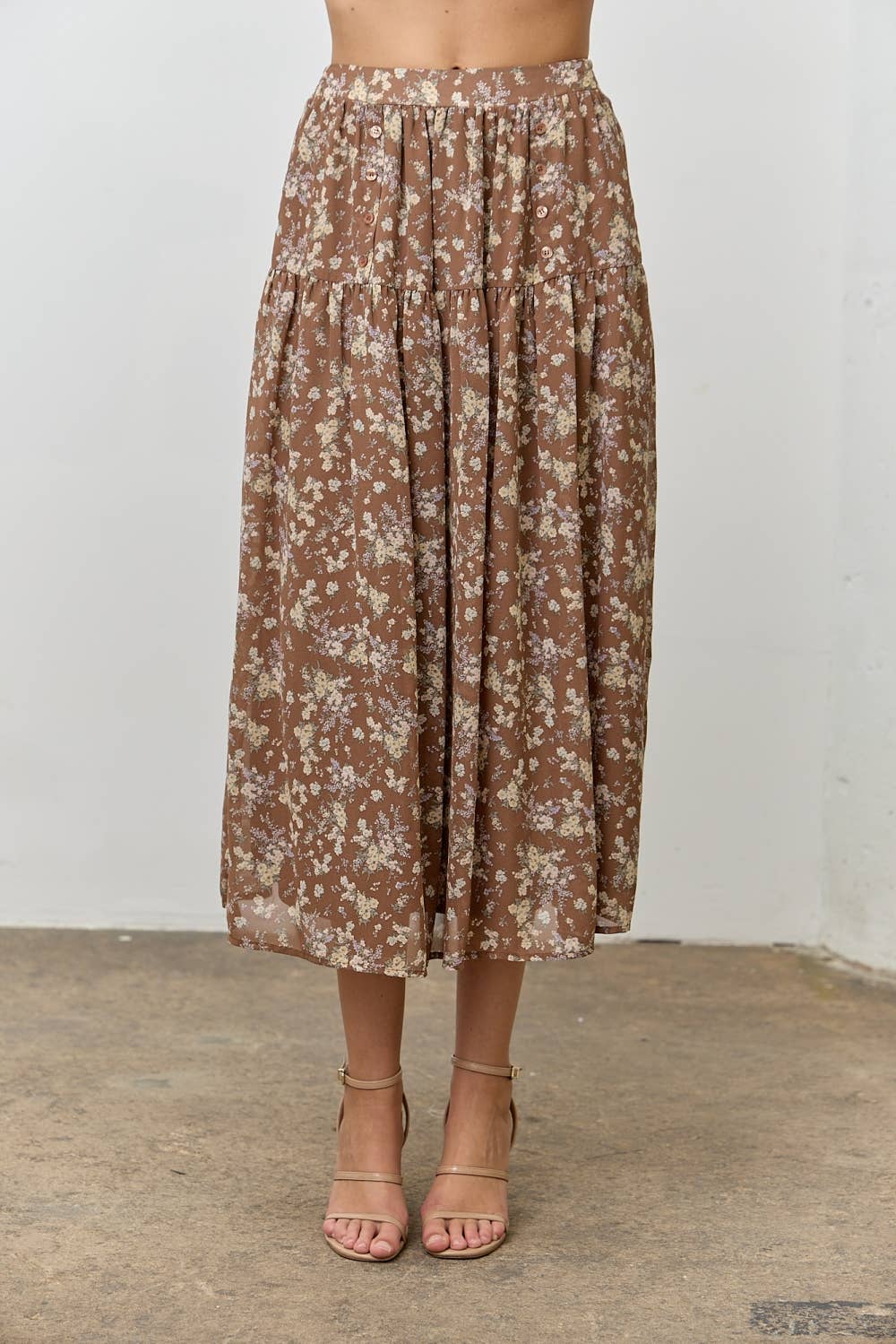 Romantic, flowy, and full of charm — the Lauren Willow Maxi Skirt captures effortless elegance with a soft, chiffon-style fabric that drapes beautifully with every step. The delicate floral print and neutral tones make it a timeless piece that pairs perfectly with cozy knits or airy blouses year-round.