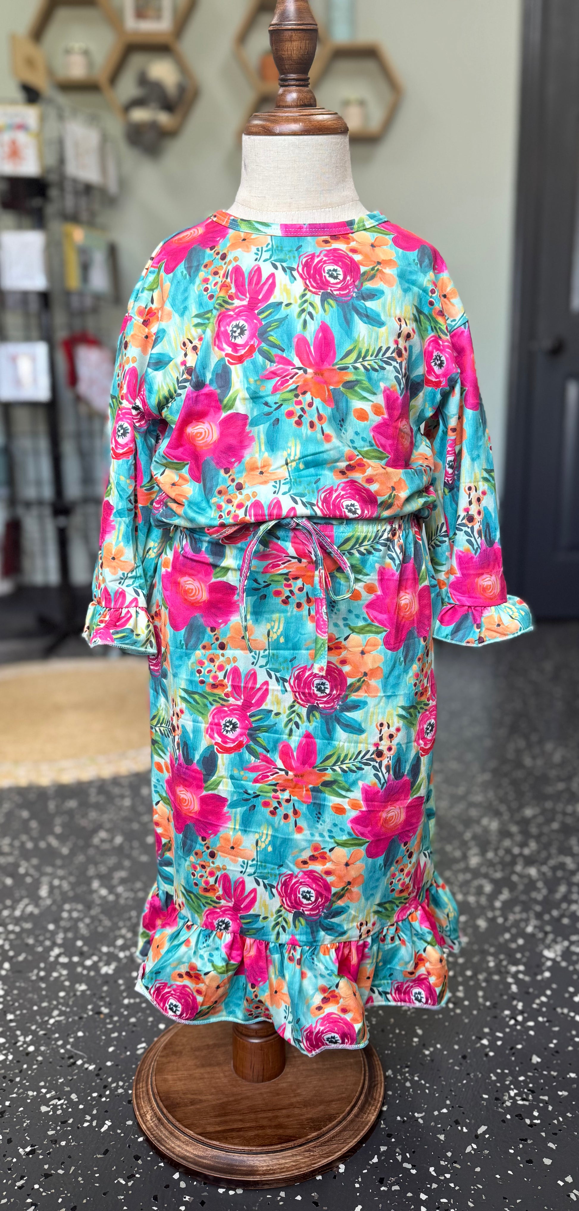 Bring a little sunshine to her day with Lil’ Flora Belle 🌸 — the sweetest loungewear set designed to match Mom! Bursting with the same bold watercolor florals in hot pink, coral, and teal, this set is bright, cheerful, and oh-so-comfy. Perfect for playtime, family outings, or twinning with Mama, Lil’ Flora Belle is a must-have for her wardrobe.