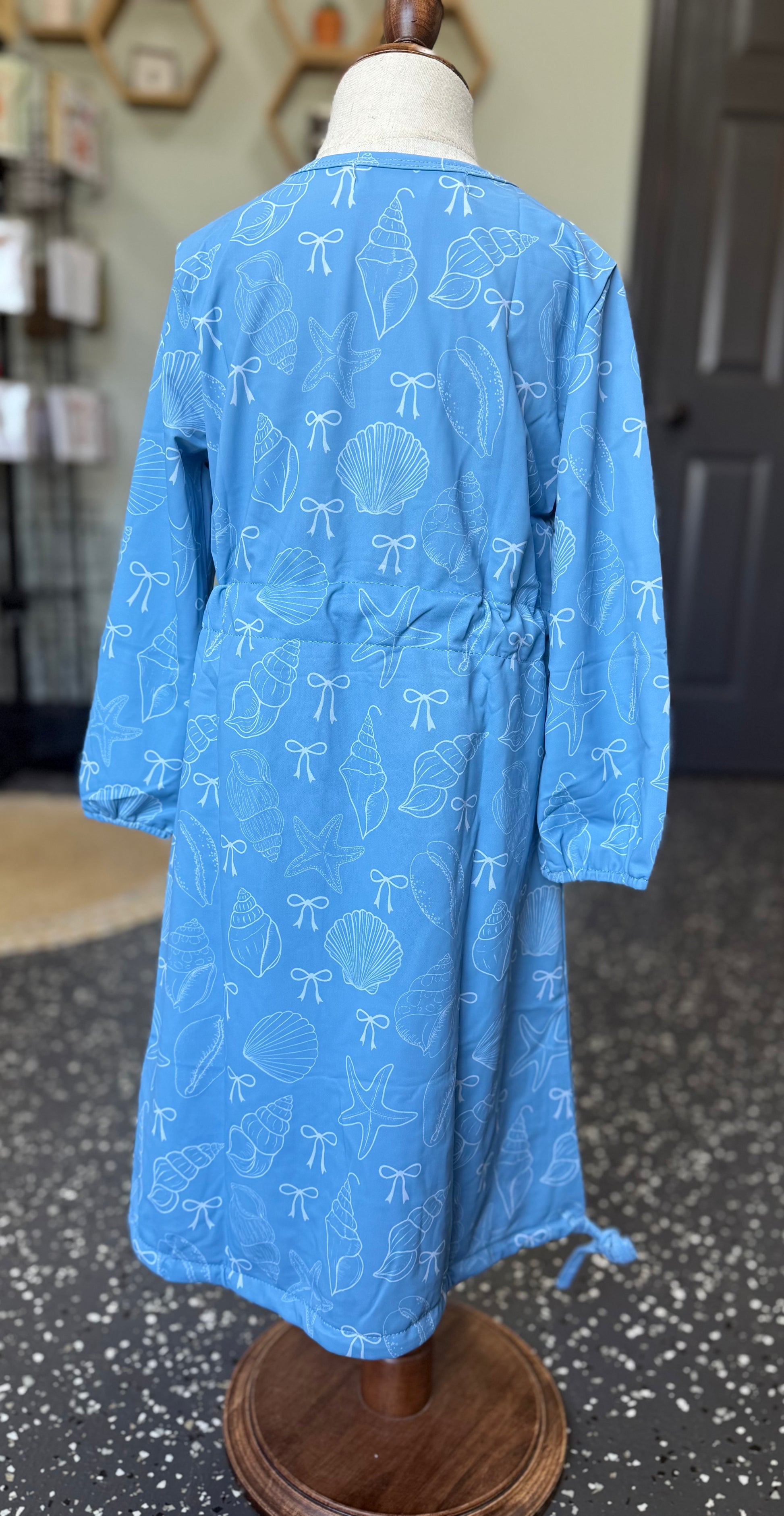 The Lil’ Serena Shelle Swim Dress is the perfect blend of playful and practical. Featuring a charming seashell-and-bow print on a breezy ocean-blue background, this darling dress was designed to let your little one splash, swim, and play with ease. πŸŒŠπŸŽ€
