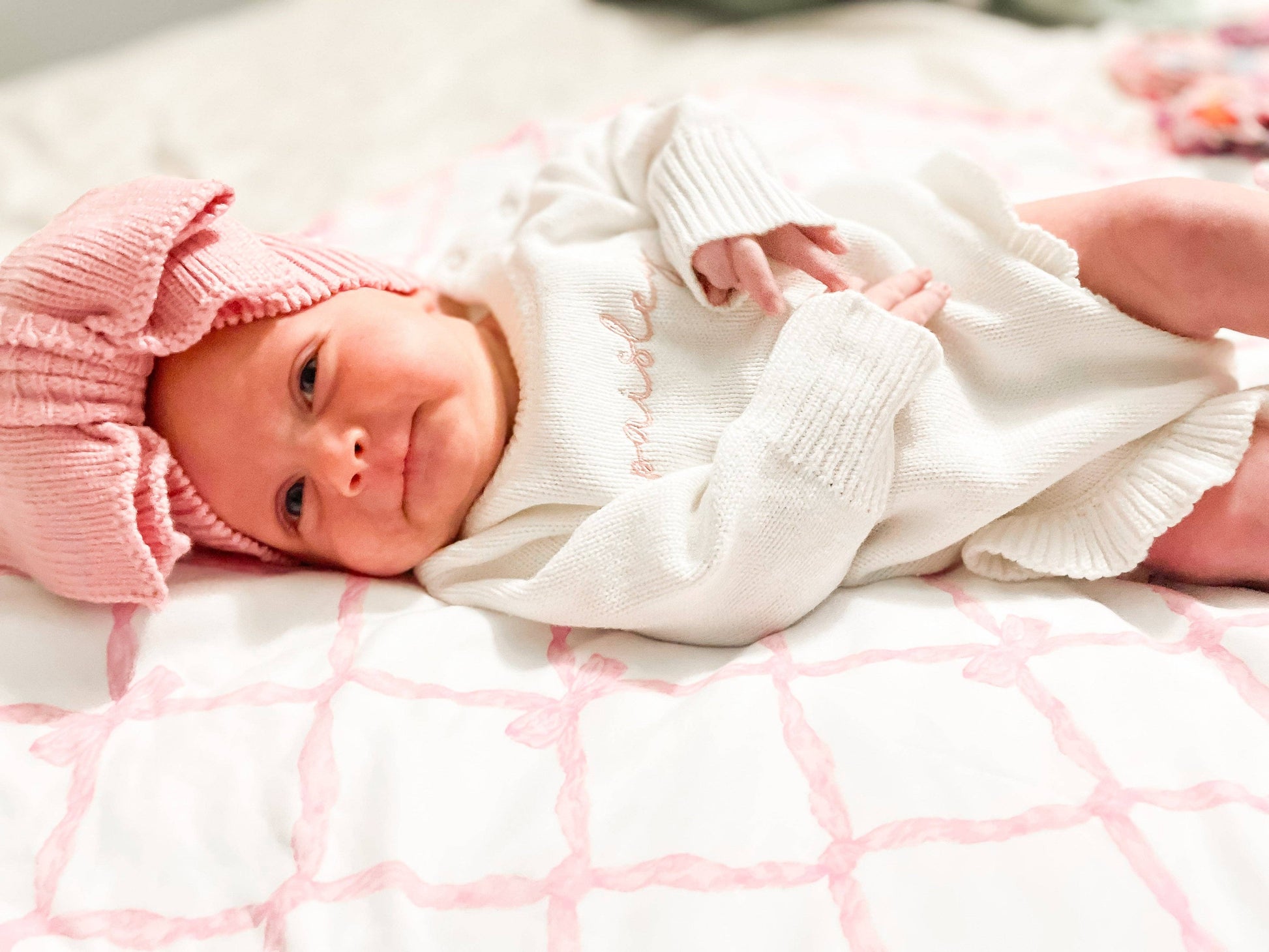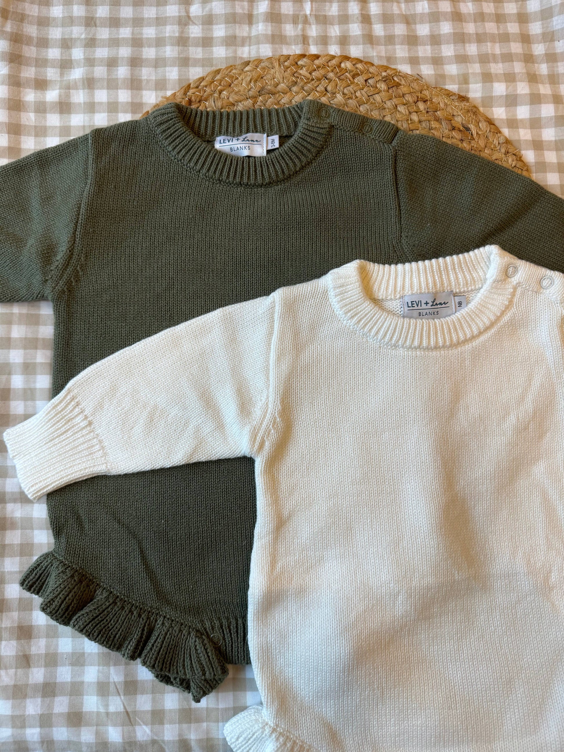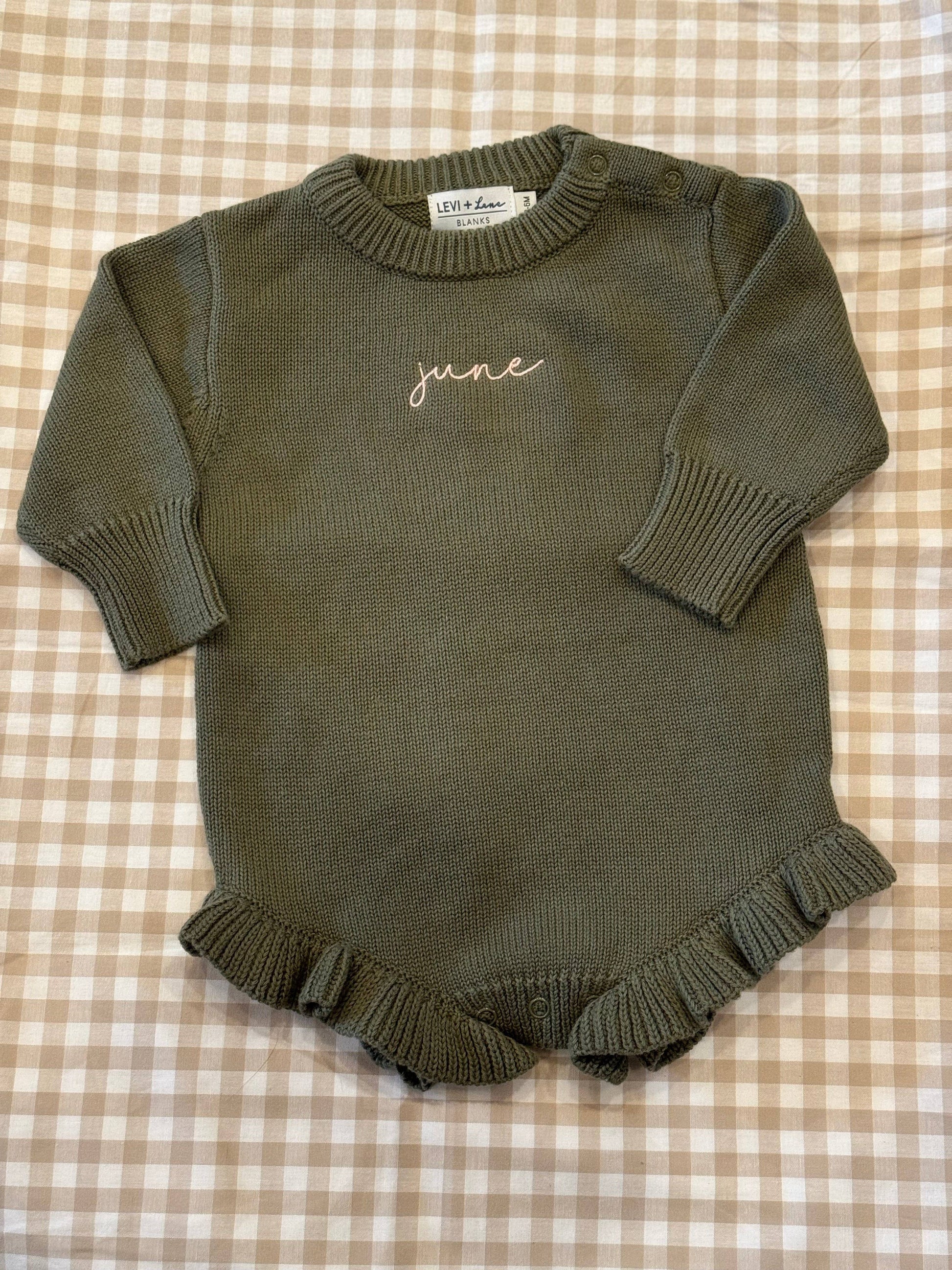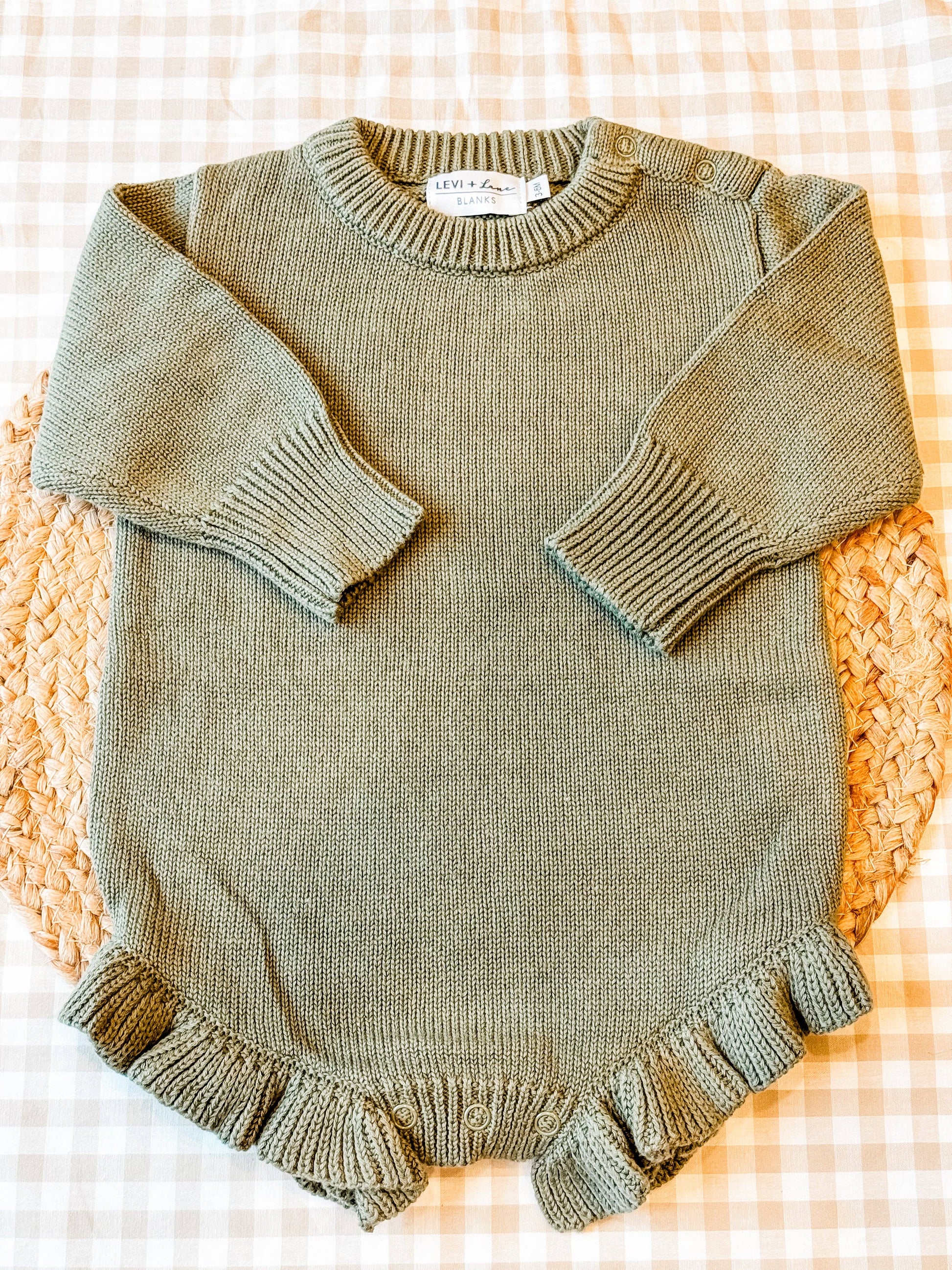 Long Sleeve Knit Ruffle Romper - NEW TRUE TO SIZE FIT: Light Pink / NB