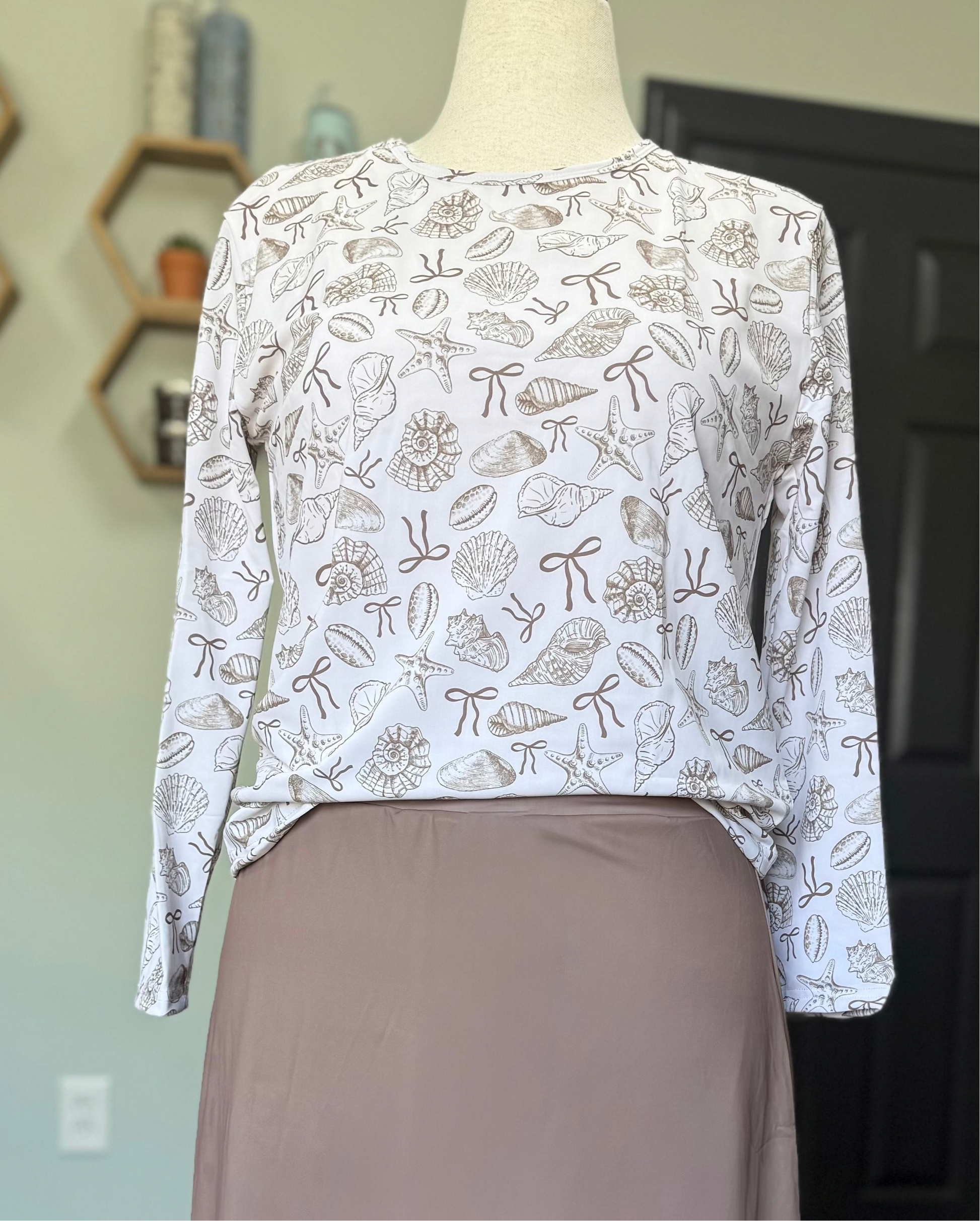 - Long sleeve rash guard with seashell + starfish print ๐โญ