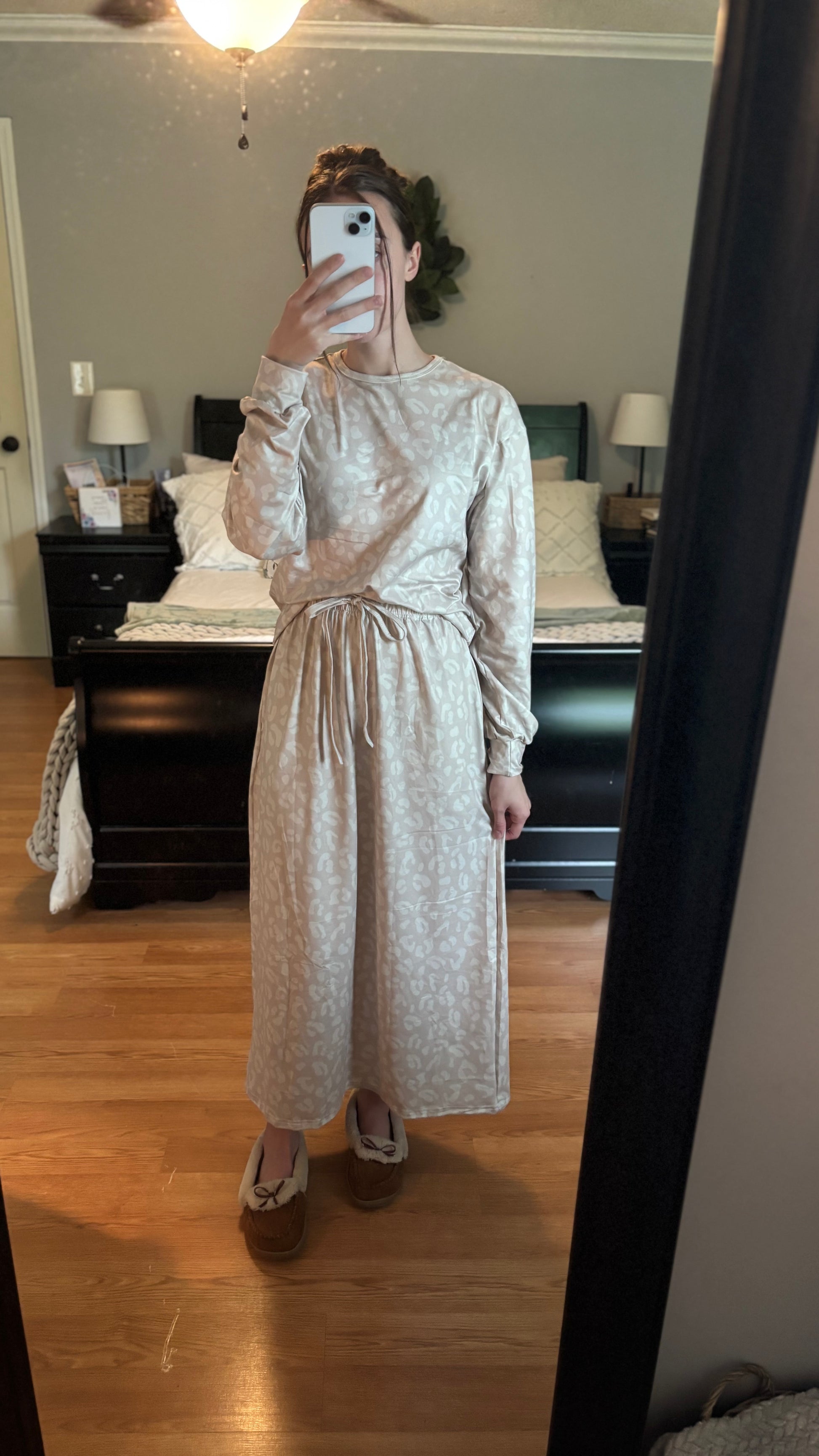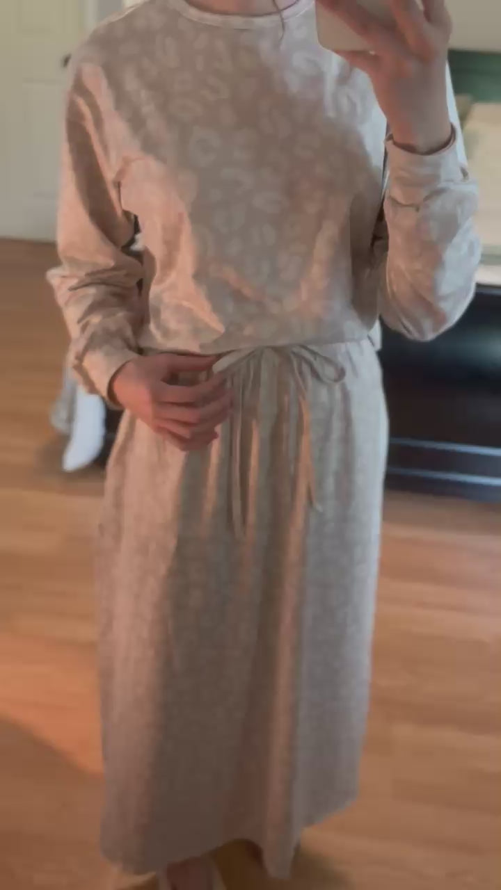 Elevate your lounge game with The Mila Set — a soft, sophisticated loungewear essential in a dreamy taupe with a tonal leopard print that adds just the right touch of flair. This set features a relaxed-fit long sleeve top and a drawstring waist skirt designed for ease and effortless elegance. Whether you’re staying in or stepping out, The Mila delivers comfort without compromising style.