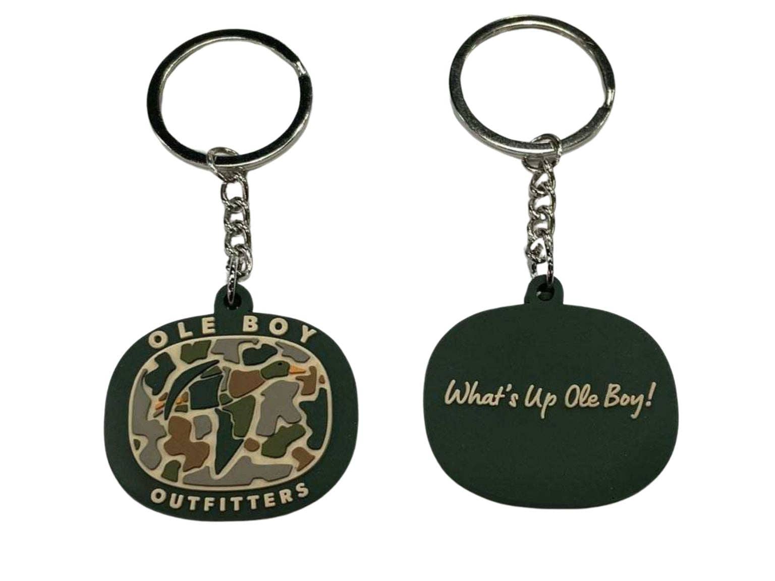 Carry your love for hunting with you everywhere with the OLE BOY Camo Mallard Duck Keychain. The perfect accessory for proud ole boys, this keychain features a camo mallard duck design from your favorite outfitter with our trademarked slogan "What's Up Ole Boy!" on the back. Always be repping Ole Boy Outfitters with this one-of-a-kind keychain.