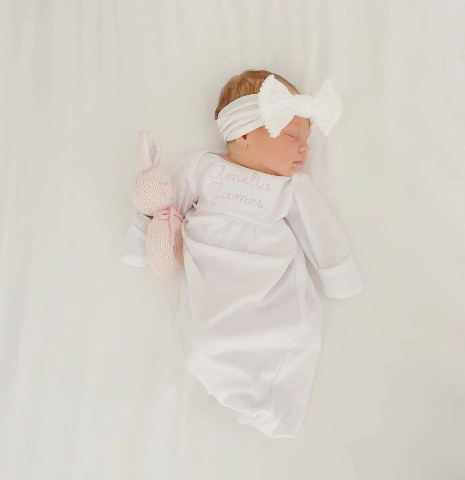 Pima Gown-White, Pink, Pink Dot: Pink 0-3M