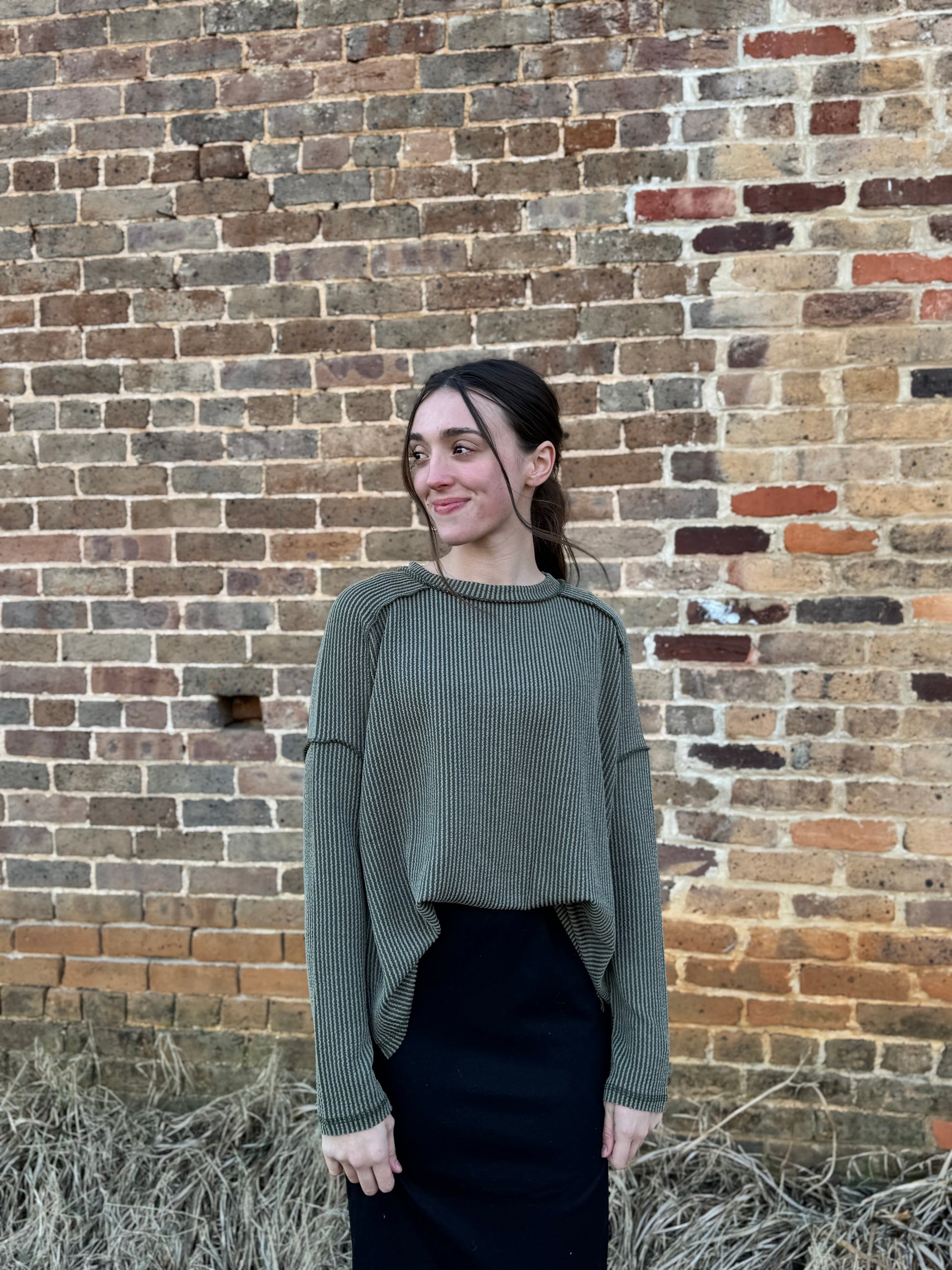 Effortlessly cool and endlessly versatile, the Sadie Top is a must-have staple for your everyday wardrobe. Designed with a soft ribbed knit fabric, this top features a relaxed, flowy fit with subtle raw seam detailing for a lived-in, modern look. The longer hemline creates a flattering drape that pairs perfectly with leggings, denim, or layered over skirts. Lightweight yet cozy, the Sadie Top is easy to dress up or down for any season.