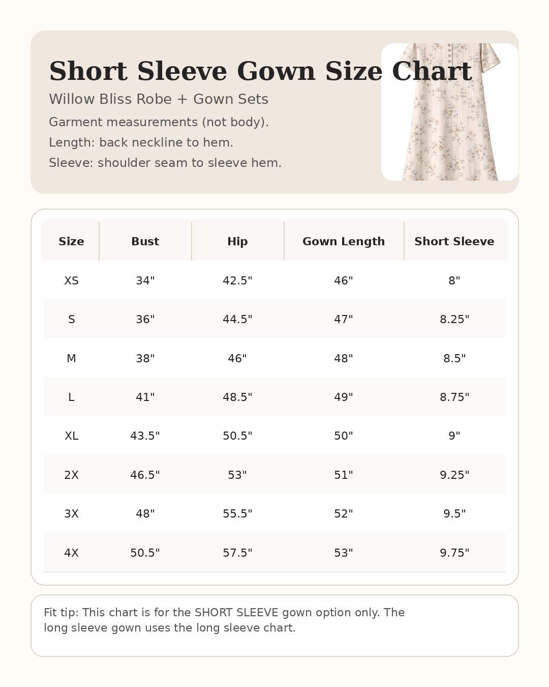 Length & Fit Notes: The robe is ankle length and slightly oversized to accommodate the gown underneath. The gown is designed to be a bit shorter than the robe for an easy layered look.