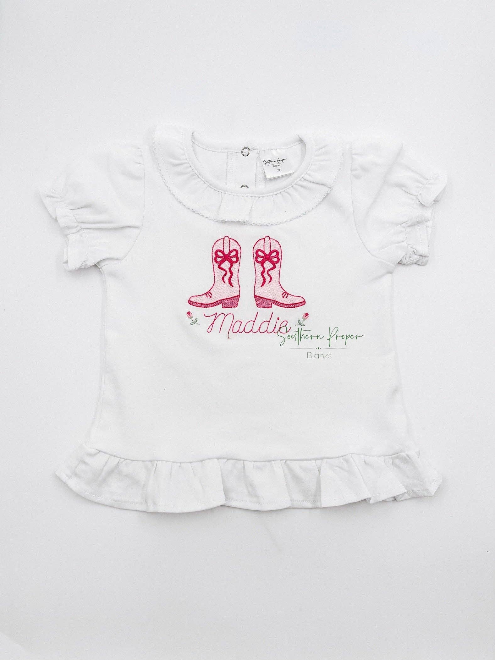 ✨Girl’s ruffle neck shirt! I’m so excited for this new, cute basic girl’s tee! Leave it blank or add any and all embroidery designs! Made for our very popular cotton/spandex material that everyone has LOVED!