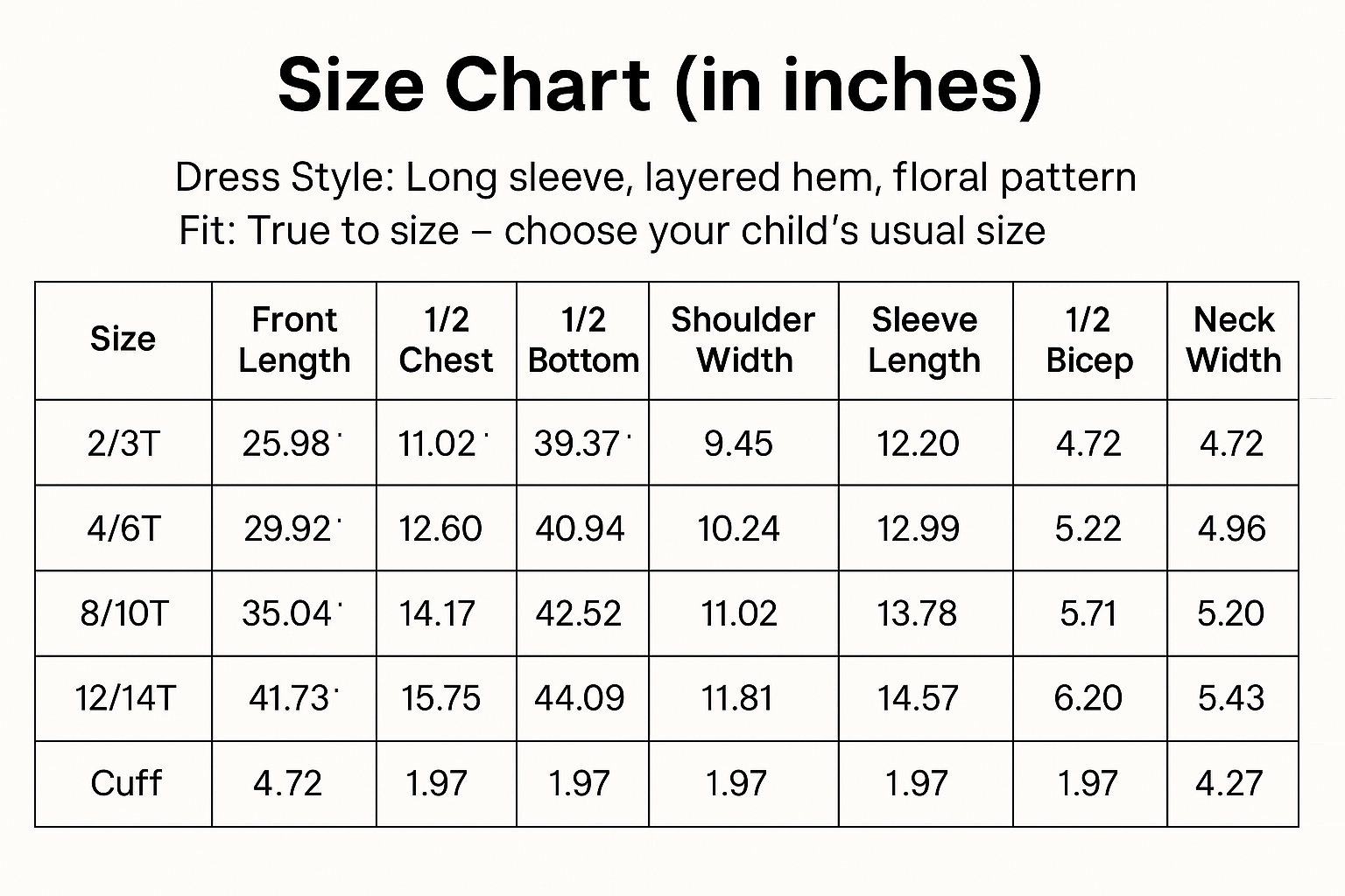 - Girls Sizes: 2T–14